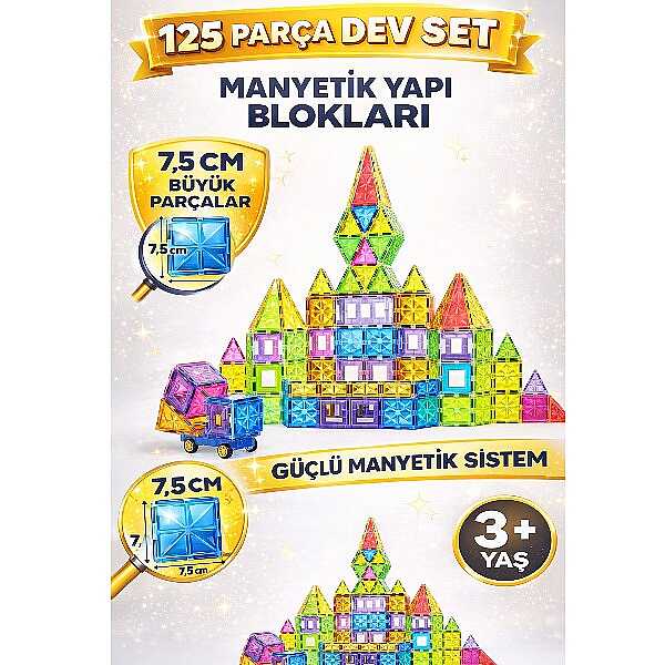 Gelince Haber Ver125 Parça Manyetik Yapı Blokları 7,5 Cm ile çocukların hayal gücünü güçlendirin! Güçlü mıknatısları sayesinde parçalar kolayca birleşir; renkli ve şeffaf tasarımıyla yaratıcılığı teşvik ederken STEM öğrenmesine destek olur. El-göz koordinasyonu, ince motor becerileri ve odaklanma gelişimine katkı sağlayan bu eğitici oyuncak, anaokulu ve kreş kullanımına uygundur.