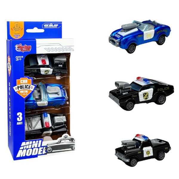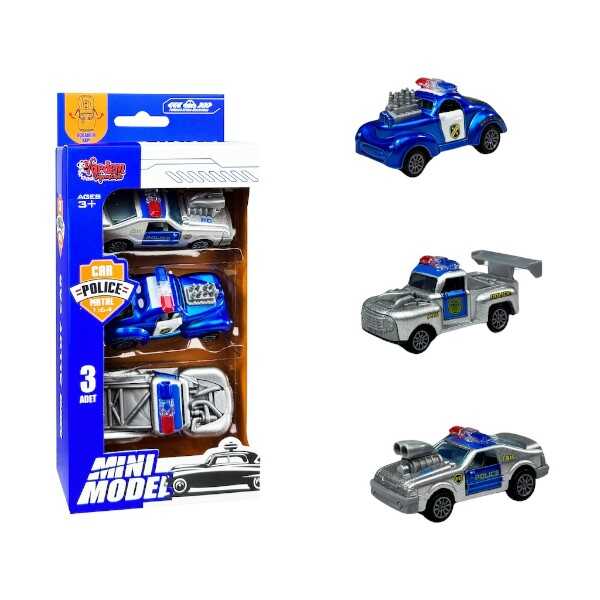 3 Parça Polis Metal Çek Bırak Araba Mini Model 1:64