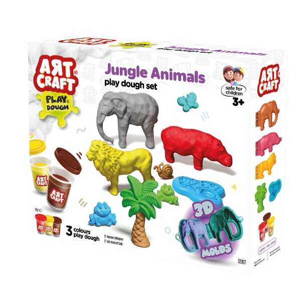 Ürün içeriği, 3D kalıplardan ve 4 renk oyun hamurudan oluşmaktadır.