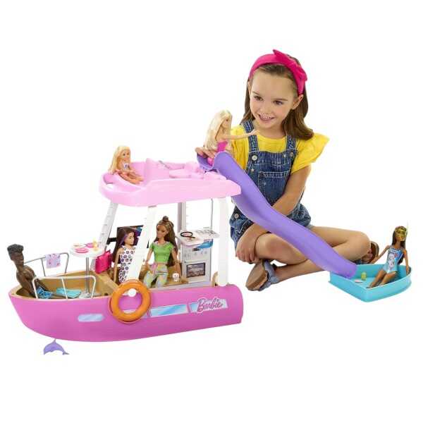 Barbie'nin Rüya Botu ile dalgalara karşı bir yolculuğa çıkın. Bu oyun setinde havuz, kaydırak, iki farklı dönüşüm ve daha birçok özel ayrıntı yer alır.