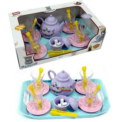 Gelince Haber Verİnce belli Bardaklarla Oyuncak Çay Seti Tepsili Çay Vakti