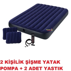 En Uygun Fiyat Garantisi İntex 64765 Classic Çift Kişilik Şişme Yatak Seti Pompa ve Yastık 152x203x25 cm