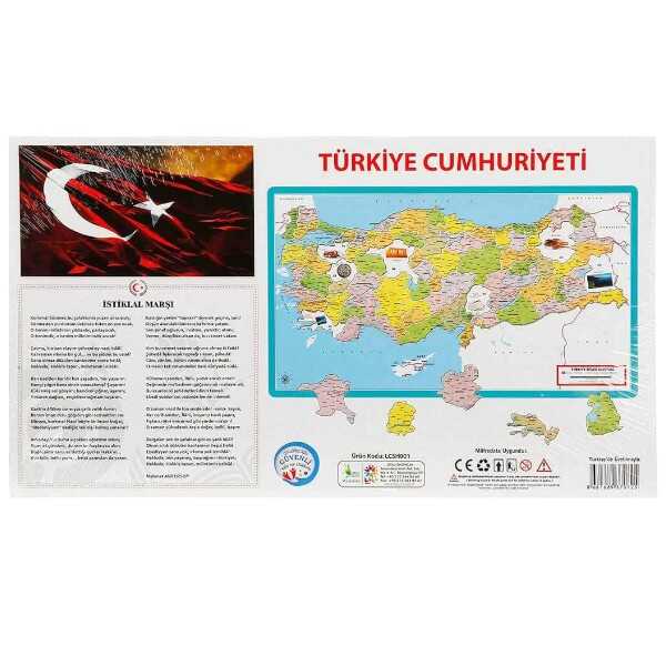 Eğitici puzzle tamamlandığında Türkiye haritası ortaya çıkmaktadır. Çocuklar Türkiye’nin şehirlerini eğlenirken öğrenebilecekler.