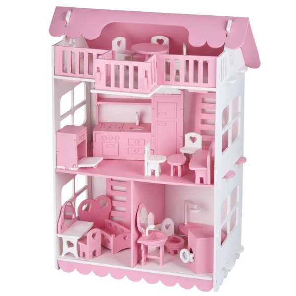 Gelince Haber VerLüks 3 Katlı Ahşap Oyuncak Bebek Evi 32 Parça | Doğal Ahşap | Mobilyalı Çocuk Oyun Seti