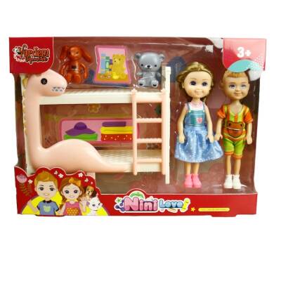 Nini Love Ranzalı Sevimli ranzası ve minik hayvan figürleri yer almaktadır.Kutu Boyutu: 29x22x7,5 cmYaş:3+Oyuncak Bebek Set