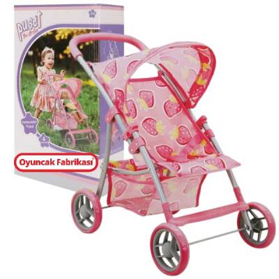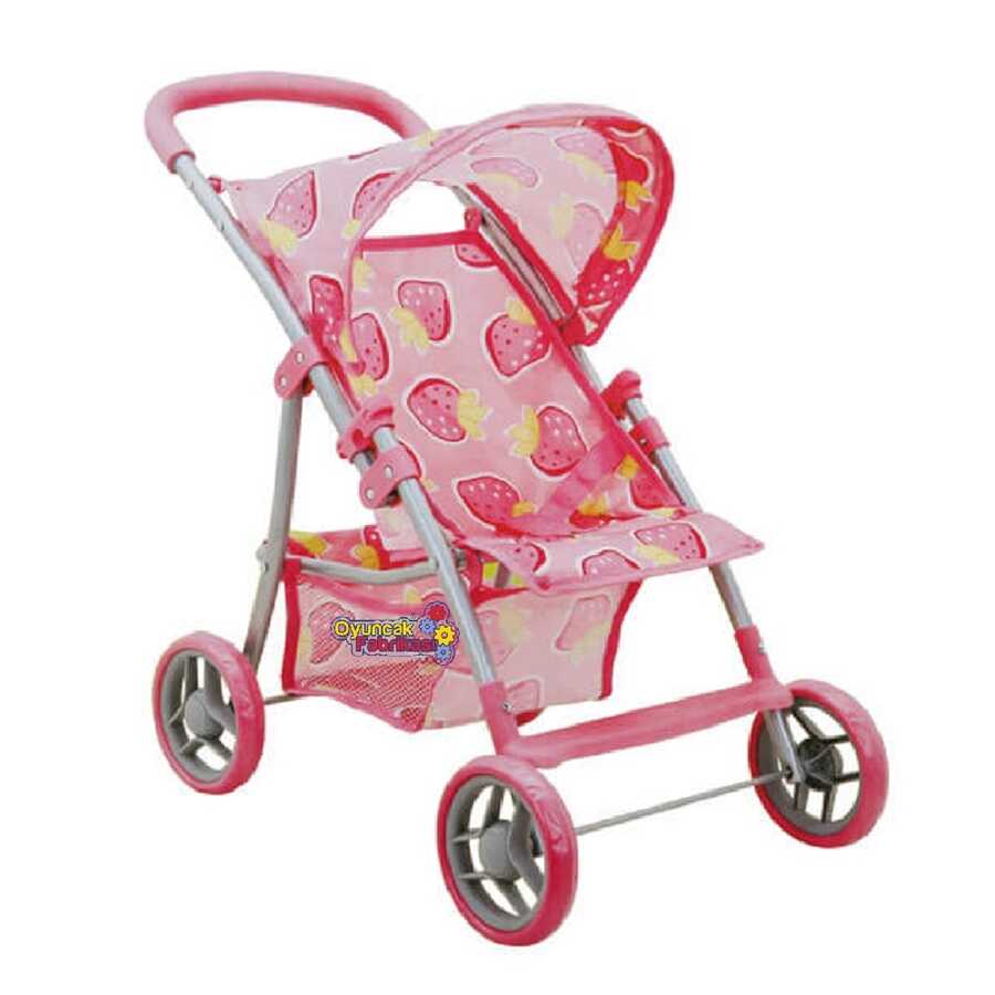 Oyuncak Puset Bebek Arabası 4 Tekerlekli Çilek Desenli