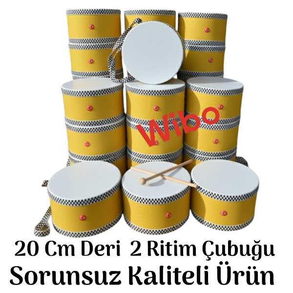 Gelince Haber VerWİBO Askılı Ahşap Deri Çocuk Davulu Deri Davul 20 Cm Sarı