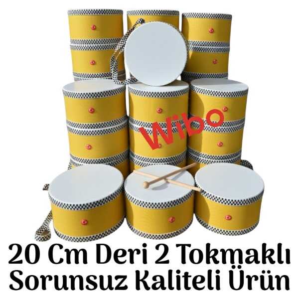 2 Adet Tokmak Çıkmaktadır ( Ürün El yapımıdır 20-19 Cm Arasındadır GelmektedirAhşap'tan Üretilmiştir Sarı Renklidir.Davul Derisi Suni Deridir Renği Beyaz'dır Lekesiz ve Pürüzsüz Temizdir .Keçi'derisinden Daha Güzel Ses Çıkarmaktadır Dayanıklı ve Sağlamdır